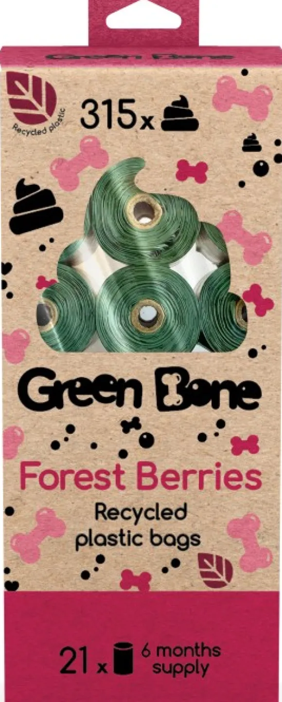 Kakkapusseissa ei ole kahvoja, ja ne on valmistettu kierrätetystä muovista. Nämä rullat sopivat täydellisesti Green Bone -kätevään pidikkeeseen. Lisäksi ne soveltuvat myös kissanhiekalle tai vaipoille, mikä tekee niistä monikäyttöisiä.