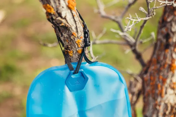 - Valettu ripustuslenkki ja heijastava nauha – mahdollistaa kätevän vesipisteen pystyttämisen leiriin tai tyhjän säiliön kuivattamisen