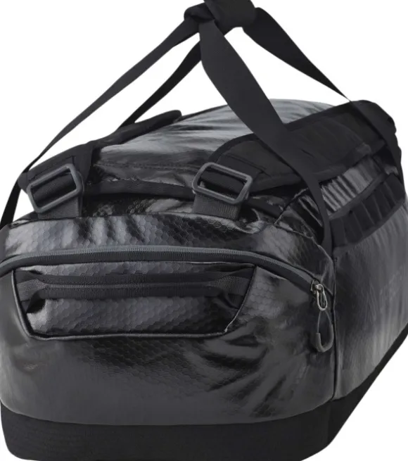 Vahvistetut kantokahvat, joissa on sisäänrakennettu lasikuitutanko, jakavat painon tasaisesti ja estävät käsien puristumista. Ulkopuolen daisy chain -lenkit tarjoavat nopean tavan kiinnittää varusteita tai sitoa laukku turvallisesti kuljetusta varten.