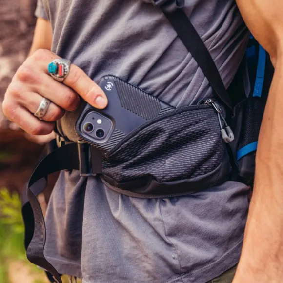 - Pehmustettu 3D-lantiovyö, jossa suuret vetoketjulliset taskut