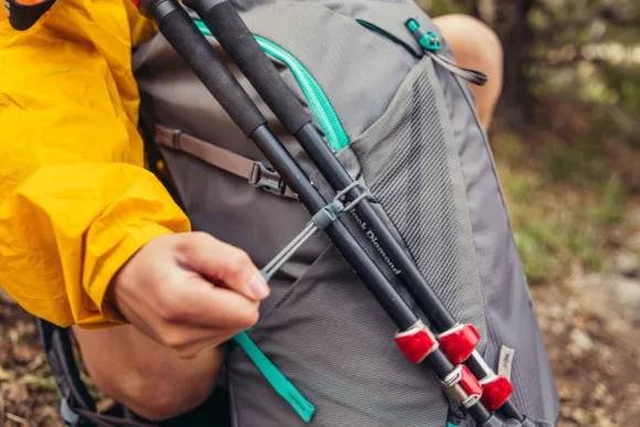 - Säädettävä kiinnityslenkki ja lukko vaellussauvoille tai jäähakulle