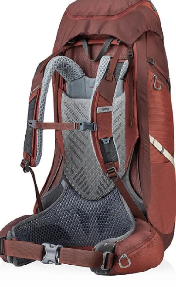 Gregory Maven 45 on kevyt ja käytännöllinen rinkka, jossa on useita hyödyllisiä ominaisuuksia. Rinkassa on joustava Freefloat-kantojärjestelmä, joka tukee hyvin kävellessä. Selkäpaneeli tarjoaa hyvän hengittävyyden. Rinkan sisältöön on helppo päästä käsiksi päältä sekä edestä U:n muotoisen vetoketjun ansiosta. Useat taskut helpottavat pitämään tavarat järjestyksessä.