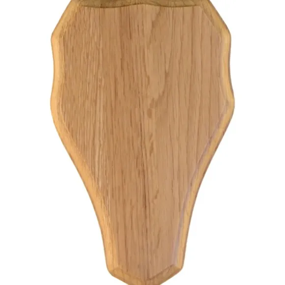 Vaaleasta tammesta valmistettu kauristrofeen taustalevy. Mitat: 19 x 12 cm.