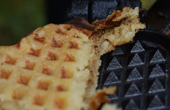 Hällmarkin vohvelirauta on valmistettu valuraudasta, joten sillä voi paistaa vohvelit avotulella.