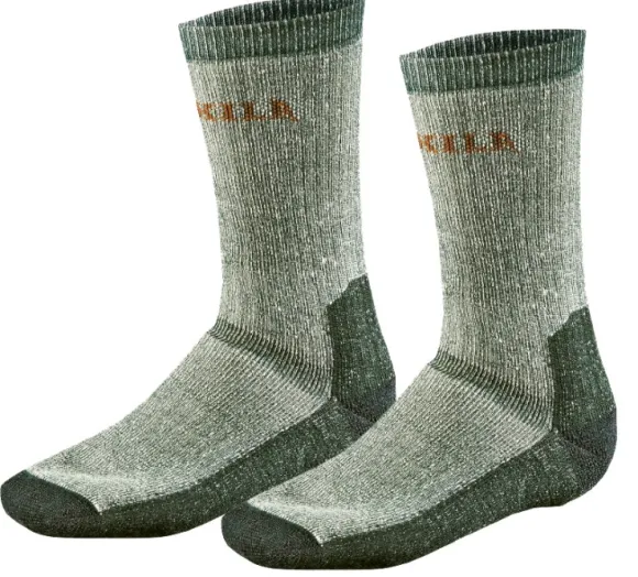 Härkilan Expedition -sukat on valmistettu nailonilla vahvistetusta merinovillasta. Merinovilla on paitsi lämmin ja miellyttävän tuntuinen materiaali, myös erinomaisesti hengittävää ja kosteutta siirtävää. Päkiät ja kantapäät vahvistettu kestämään kulutusta, ja pohja vaimentaa iskuja ja suojaa jalkoja rasitukselta.
