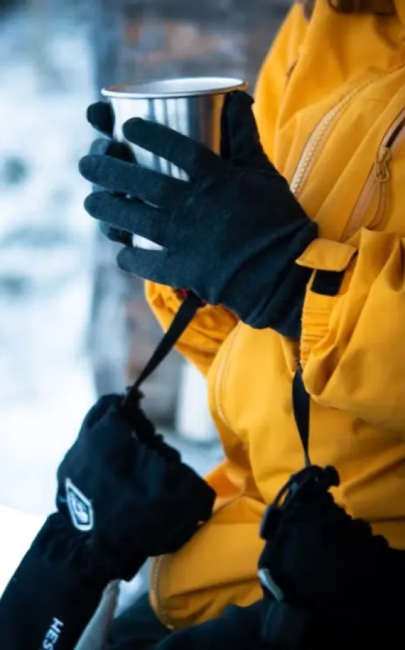 Hestran merinovillaiset hanskat sopivat oivallisesti lisäkerrokseksi varsinaisten talvihanskojen alle, sillä pehmeä merinovilla on lämmintä, hengittävää ja tehokkaasti kosteutta ulompiin kerroksiin siirtävää. Lisäksi merinovilla on luonnostaan antibakteerista ja hajuja hylkivää. Joustavat hanskat sujahtavat istuvasti käteen ja mahtuvat vaivatta paksumman hansikkaan alle.