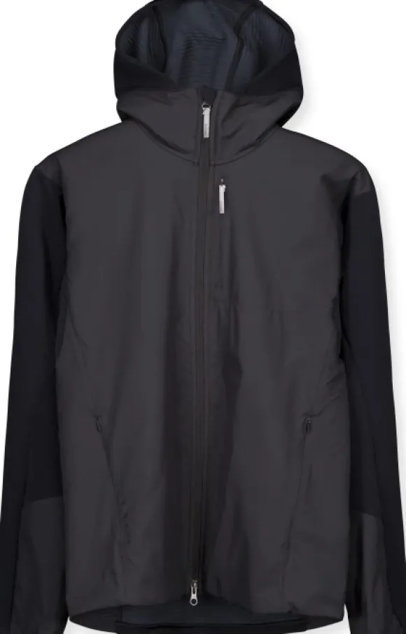 Kaksi kangasta on sijoitettu eri kehon osiin tarjoten joko lisälämpöä tai parempaa hengittävyyttä. Tiukasti istuva huppu suojaa päätäsi. Kaksi huomaamattomasti integroitua sivutaskua ja rintatasku pitävät tavarasi tallessa.