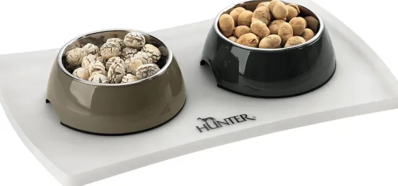 Läpinäkyvästä silikonista valmistettu alusta HUNTER-painatuksella. Kestävä materiaali, joka on konepestävää. Taitettu reuna suojaa esimerkiksi lattiaa sotkulta.
