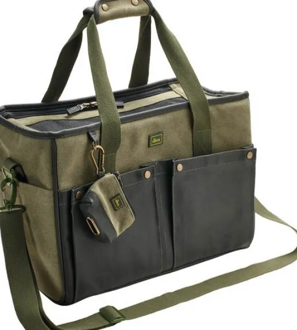 Laukun ulkopuolella on käytännöllisiä taskuja, joista yhdessä on erillinen tasku koirankakkapusseille. Laukussa on kaksi kantokahvaa sekä säädettävä ja irrotettava olkahihna. Laukku kestää enintään 7 kg painon ja sopii sekä koirille että kissoille.