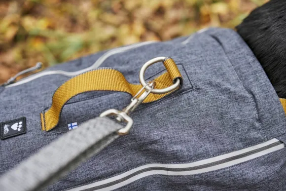 Parannettu hallinta kätevän selkäkahvan ansiosta, joka on täydellinen koiran kontrollointiin haastavissa tilanteissa. Näkyvyyttä heikossa valaistuksessa parantaa heijastava painatus edessä ja heijastavat vetoketjut.