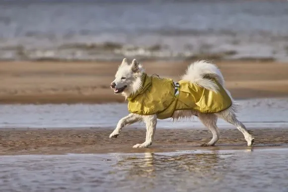 Takajalan lenkit pitävät takin paikallaan nopeiden juoksujen ja tuulisen sään aikana. Selän pituutta on helppo säätää istuvuuden parantamiseksi, kun taas säädettävä ja joustava vyötärövyö lisää koiran mukavuutta.