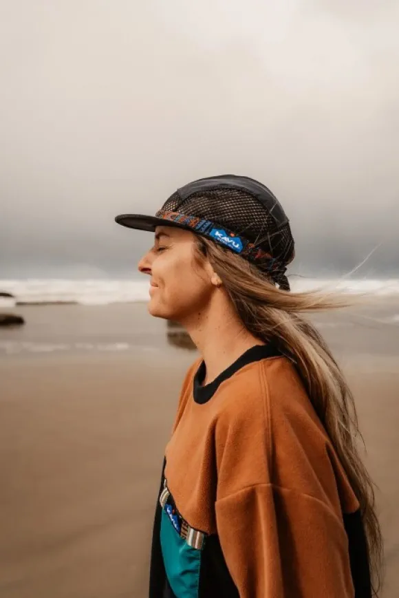 Kavus Trail Runner on hengittävä lippis, jossa on verkkopaneelit vettähylkivästä nailonista. Sisäpuolella on kosteutta imevä nauha, ja istuvuutta voit säätää helposti takaa, jotta lippis pysyy hyvin päässä. Lippa on kevyesti kaareva ja sen alapuoli on musta.