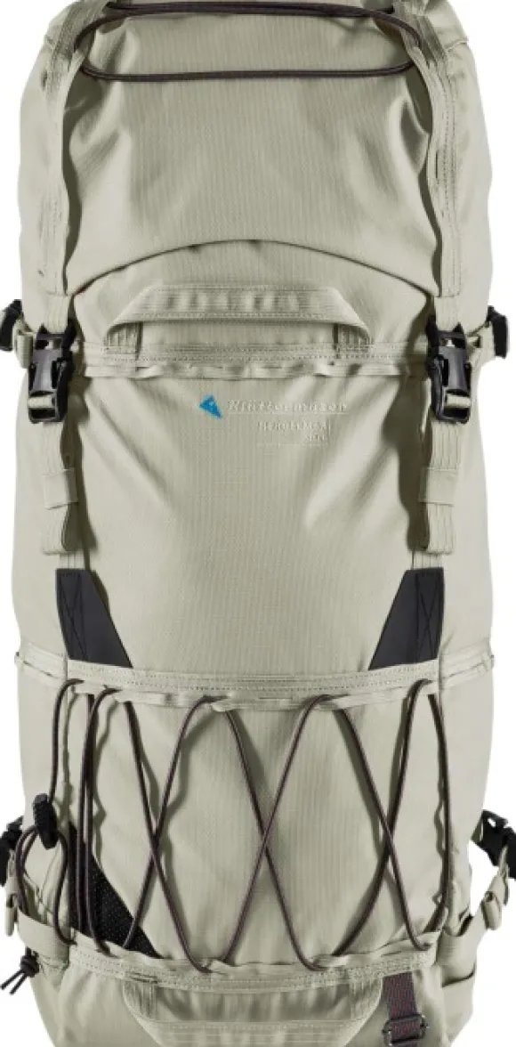 Ylhäältä avattava suuaukko, lisätaskut sekä laajennettava kansi mahdollistavat nopean pääsyn varusteisiin ja tilaa esimerkiksi teltalle. Ulkopuolinen joustonyörijärjestelmä on kätevä esim. märille tai lämpimille varavaatteille.