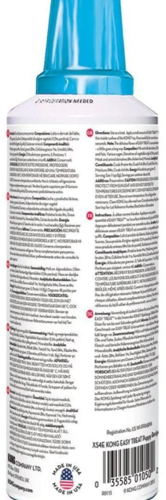 Kong Easy Treatin ainutlaatuinen suutin tekee annostelusta helppoa samalla kun se estää sotkut täytettäessä. Ruiskuta pieni määrä Kong-lelun sisäpuolelle. Paina nappia varovasti 1-2 sekuntia.