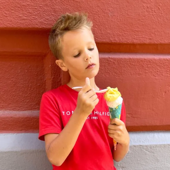 Pienempi lusikka-haarukka-veitsi -yhdistelmä pienille suille.