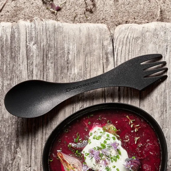 Vain 11-grammainen ja 17 cm pitkä Spork on helppo kantaa mukana sekä kestää konepesun ja kuumuutta. Spork on myös hellävarainen teflonpinnoitteisille astioille.