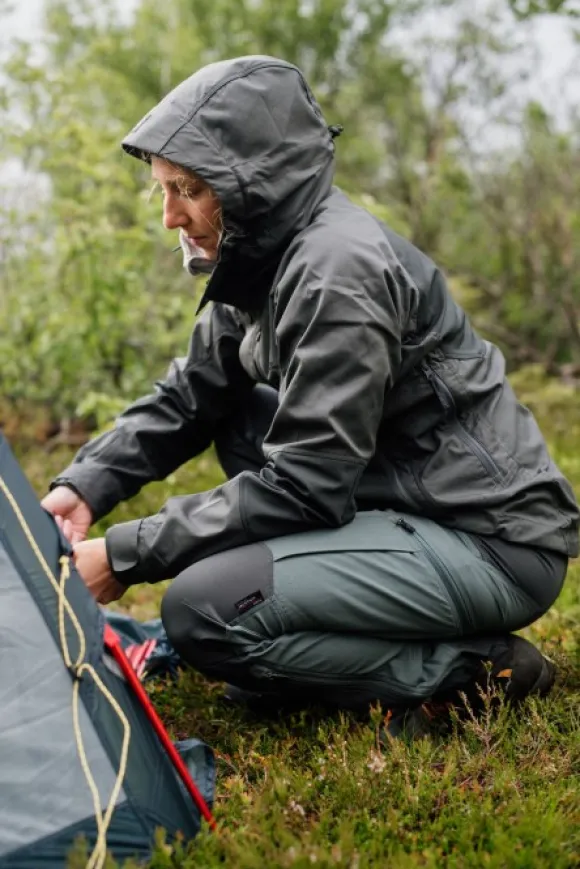 Naisten kevyet ja kestävät Makke-ulkoiluhousut istuvat erinomaisesti teknisen Slim Fit- mallinsa ansiosta, ja ne ovat myös mukavan joustavat päällä. Housujen etusäären, haaraosan sekä takapuolen Schoeller® Dry Skin -stretchkangas ja Schoeller® Keprotec® -vahvikkeet ovat veden- ja tuulenpitävää materiaalia, jotka lisäävät housujen käyttömukavuutta ja kestävyyttä. Sisäreisissä ja lahkeenvarsien ulkosyrjissä on tuuletusventilaatiot, ja vyötäröä ja lahkeensuita voi säätää. Lahkeensuissa on lisäksi metallikoukut, joiden avulla lahkeet saa ankkuroitua kengännauhoihin.