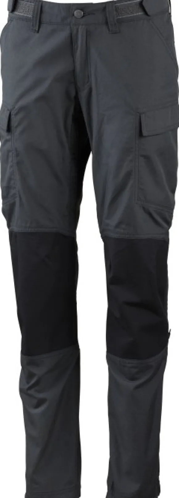 Pohkeiden sivuilla olevat tuuletusventilaatiot viilentävät lämpimissä olosuhteissa. Vyötärö on säädettävissä tarrakiristyksellä, ja housuissa on etutaskut sekä läpällä suljettavat reisitaskut.