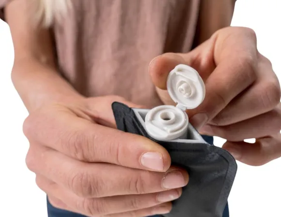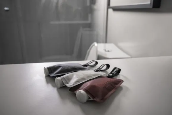 Se on 5 kertaa kevyempi* ja 3,5 kertaa kompaktimpi** kuin perinteiset silikoniset matkustuspullot samalla tilavuudella. Pullo vie vain yhtä paljon tilaa kuin sen sisältö ja on tarpeeksi joustava mahtuakseen ahtaisiin tiloihin.