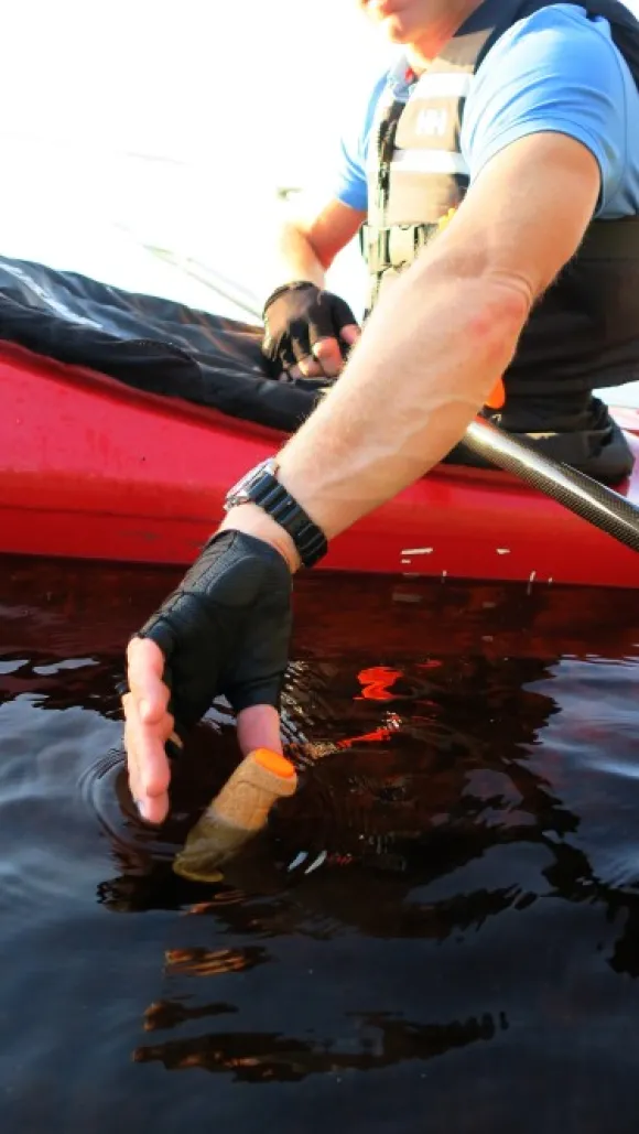 Kevyen ja helposti mukaan otettavan Morakniv Floating Knifen voi kiinnittää kelluntaliiviin kätevän vyöklipsin avulla.