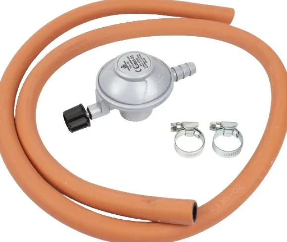 Muurikka Camping Regulaattorisetti, jossa on kierreliitäntä kertakäyttöisille säiliöille. Sopii Muurikka paistinpannusetille. 29 mbar regulaattori, 120 cm pitkä kumiletku ja kapasiteetti 1,0 kg/h. CE-hyväksytty standardin EN16129 mukaan.