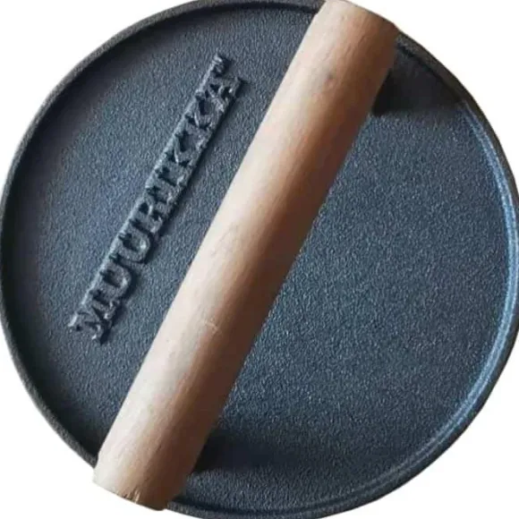 Tämä Muurikan pyöreä pihviprässi on valurautaa ja siinä on tukeva puinen kahva. Prässi sopii sekä grillissä että paistinpannulla. Pihviprässillä valmistat ns. Smash Burger -pihvejä, joissa painat lihaa kuumaa paistopintaa vasten. Hampurilaisesi kypsyvät sekä pehmeämmin että nopeammin.