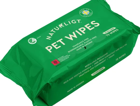 Naturligt® Pet Wipes on kätevä koiratarvike uudelleensuljettavassa pakkauksessa – helppo ottaa mukaan laukkuun. Nämä hajusteettomat ja biohajoavat kosteuspyyhkeet koirille ovat muovittomia, Joutsenmerkittyjä ja valmistettu Ruotsissa.