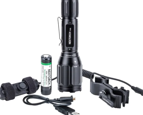 Nextorchin setti T5G-taskulampulla. Taskulampussa on 1200 lumenin valovirta, ja sekä valkoinen että vihreä valo. Paketti sisältää 18650-akun (2600 mAh), painekytkimen, vaihdettavan vihreän LEDin ja kiinnikkeen aseeseen kiinnitystä varten.