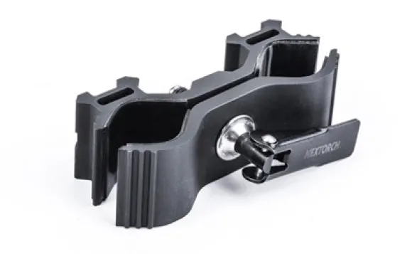 Nextorch-kiinnike valojen kiinnittämiseksi aseeseen. Helppo säätää, sopii kaikkiin lamppuihin.