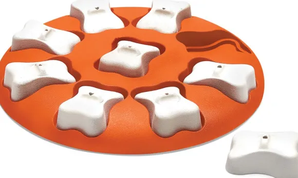 Tämä aloittelijatason peli, luokiteltu tasolle 1, opettaa koiraa käyttämään hajuaistiaan ja ongelmanratkaisukykyään löytääkseen piilotetut herkut. Peli koostuu useista lokerosta, joihin voi piilottaa herkkupaloja tai kuivamuonaa ja peittää ne luunmuotoisilla palikoilla.