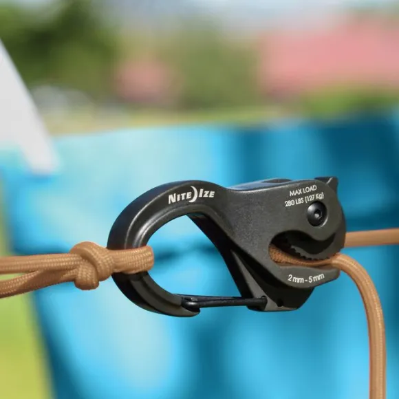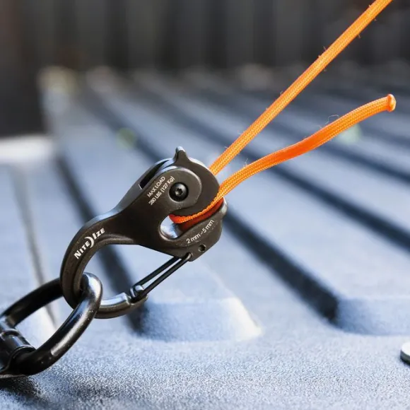 Sen tukeva yhdistelmä karabiinihakaa ja narun kiristintä/lukitsijaa mahdollistaa raskaiden ja suurten esineiden, kuten puutavaran tai retkeilyvarusteiden, kiinnittämisen ja varmistamisen.