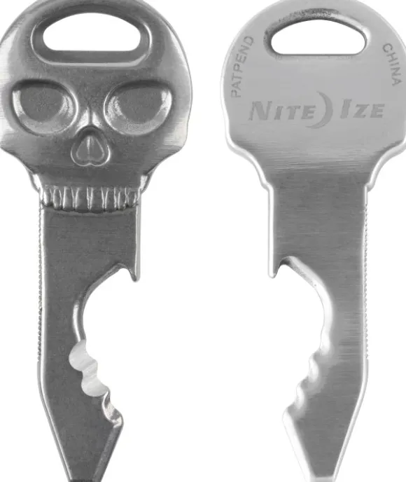 Nite Ize DoohicKey SkullKey Key Tool on pieni monitoimityökalu jonka voit kiinnittää avaimenperään. Valmistettu ruostumattomasta teräksestä. Voi käyttää ruuvimeisselinä, pullonavaajana, viilana tai leikkaamaan paperia, kartonkia tai muovia.