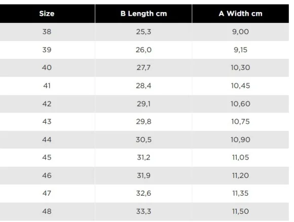 - Varren korkeus: 41 cm (koossa 42)