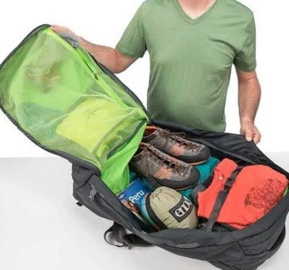 Ospreyn ainutlaatuinen StraightJacket™-kompressiojärjestelmä pitää tavarasi paikallaan, ja sillä saat laukun pakattua tarvittaessa tiiviimpään muotoon.Etupuolella on myös tasku nesteille tai arvotavaroille sekä kaksi verkkotaskua. Sisäisten kompressioremmien avulla käytät hyväksi laukun koko kapasiteetin sekä pidät tavarat paikallaan. Yöpymistä ajatellen Farpoint 80 -rinkassa on pohjatasku, jossa on sisäinen jakaja sekä tilaa makuupussille. Fiksu ja tilava laukku, jossa monipuoliset säilytysratkaisut.