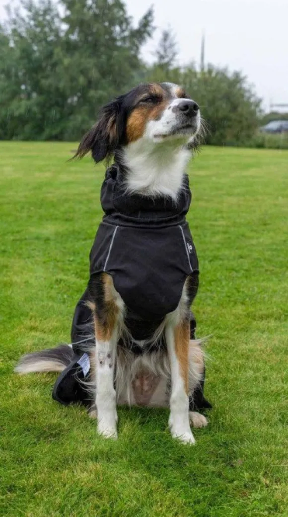 Lisäturvallisuutta varten tässä koirien sadetakissa on säädettävä heijastinnauha selässä klipsikiinnityksellä sekä heijastinyksityiskohtia, jotka näkyvät pimeässä. Kaksi vedenpitävää vetoketjua tekevät taluttimen kiinnittämisestä kaulapantaan tai valjaisiin helppoa.