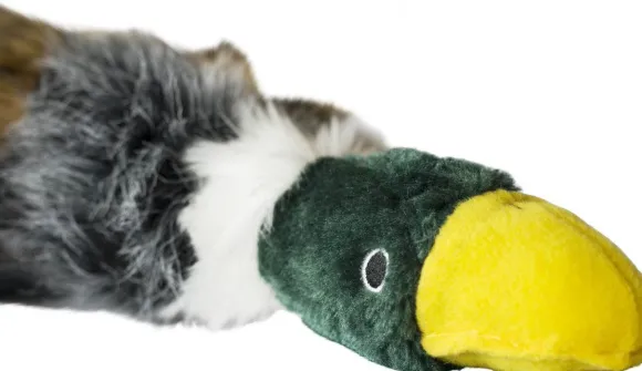 Pehmeä, ankan muotoinen koiran lelu ääntelee, kun koirasi leikkii sillä. Plyysiä.