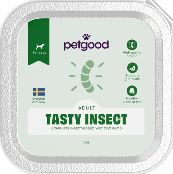 Petgoods hyönteispohjainen märkäruoka on täydellinen ja tasapainoinen märkäruoka aikuisille koirille kaikista roduista ja kokoluokista, jossa hyönteiset toimivat ainoana eläinproteiinina.