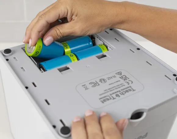 Laite saa virtansa 4 x D-paristosta, ja herkut annostellaan hiljaisella moottorilla.