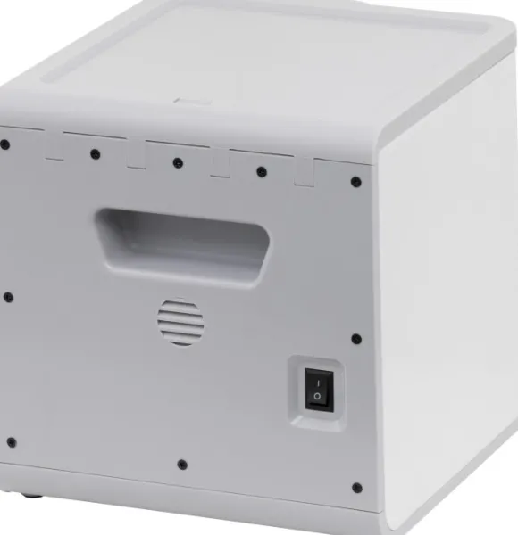 Laitteessa on annostelija, kaukosäädin ja maalikeppi. Kevyt laite on helppo siirtää haluttuun paikkaan.