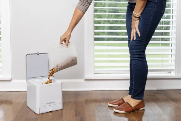 Käytä Petsafen Teach & Treat Remote Reward Trainer -laitetta kehittääksesi koiran toivottua käyttäytymistä – minimoi kerjäämistä ruokapöydässä, vieraita vasten hyppimistä ja haukkumista.