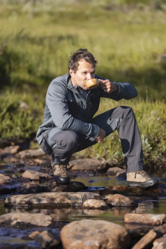 Pinewoodin Abisko Power fleecetakin voi säätää helmasta yksilöllisesti istuvaksi ja sen muotoilun ansiosta sitä on mukava käyttää koko päivän ajan erilaisissa aktiviteeteissä. Takissa on lisäksi kaksi etutaskua ja yksi rintatasku, jossa voit säilyttää tärkeimpiä tavaroitasi.