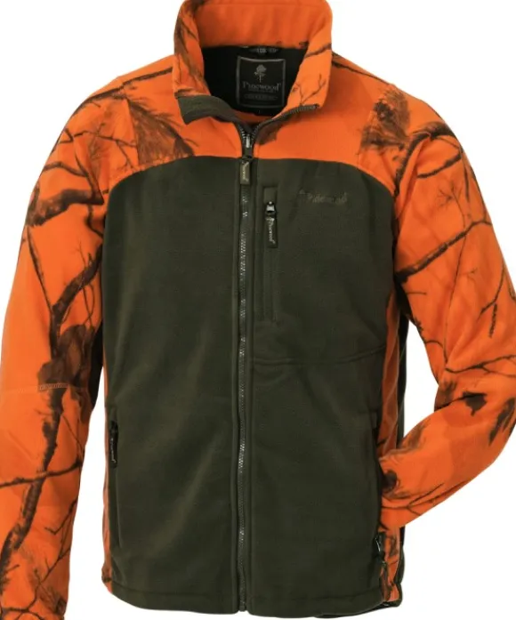 Lämmin ja mukava fleecetakki metsästykseen ja vapaa-aikaan. Lasten malli camo-kuosilla ja huomiovärillä. Vetoketjullinen rintatasku. Säädettävä helma.