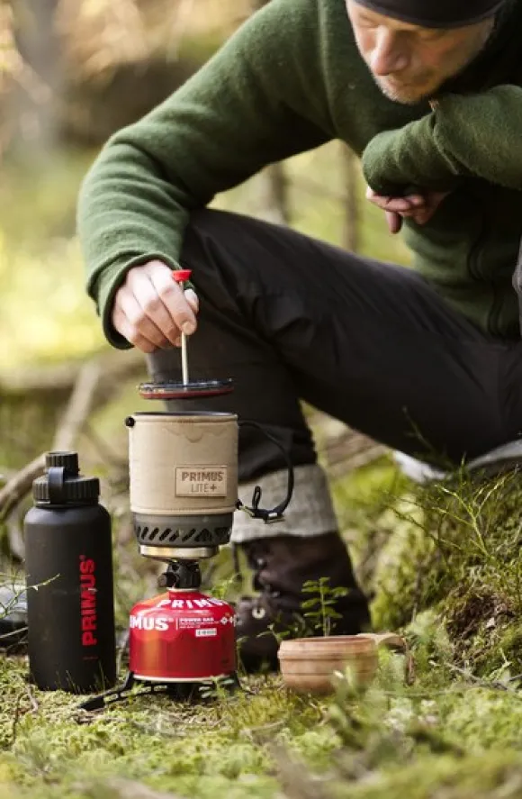 Kahvi- ja teepuristin on yhteensopiva Primuksen Lite+- ja Lite-keittimien sekä vanhempien Eta Lite -keittimien kanssa.