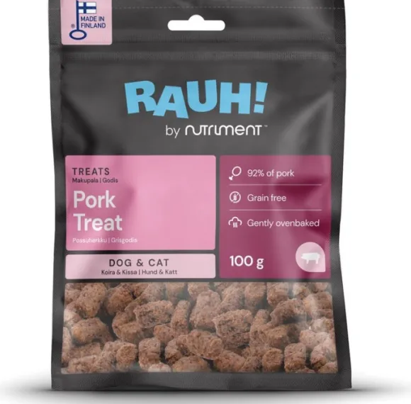 RAUH! Godis GRIS 100 g, ja koska kaikki koirat ja kissat saavat joskus herkkuja, miksi et tarjoaisi sellaista, joka tulee hyvin hoidetuista suomalaisista sioista? Possuherkku on uunissa paistettu ja matalassa lämpötilassa kuivattu delikates, joka säilyttää luonnollisen ja herkullisen makunsa.