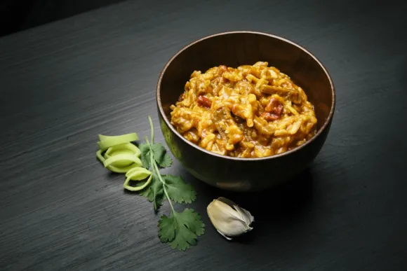 Riisi (39%), kebabliha (broileri (82%), mauste, stabilointiaine (E450, E451), dekstroosi, perunakuitu, suola, antioksidantti (E301, rosmariiniaromi)) (13%), sipuli, paprika (2%), tomaattipasta, maissi (5,3%), smetana (maito), purjo (4,4%), rypsiöljy, maissitärkkelys, lihaliemi (hiivauute, maltodekstriini, suola, rypsiöljy, lihauute, ruskeasokeri, sipuli), mausteet, sokeri, valkosipuli, antioksidantti (askorbiinihappo).