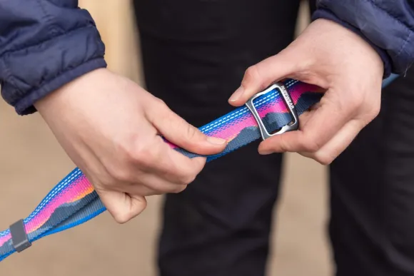 Säädettävä Crag EX™ -hihna monikäyttöinen ja sitä voidaan pitää joko kädessä normaaliin tapaan tai vyötärön ympärille kiinnitettynä, joilloin saat kädet vapaaksi. Voidaan säätää pisimmillään 1,8 metrin mittaiseksi ja lyhimmilleen 1 metrin mittaiseksi.