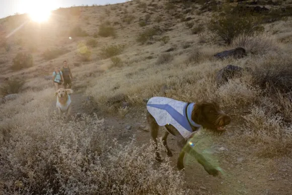 Kauluri viilentää koiraa lämpimämmällä säällä. Liota Swamp Cooler™ -kauluri ja anna koiran olla mukavan viileänä kuumilla ilmoilla. Kauluri on kevyttä elastaania ja suojaa jopa UPF 50+ asti. Kauluri imee vettä jäähdyttääkseen koiraa.