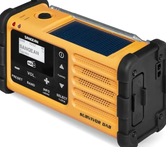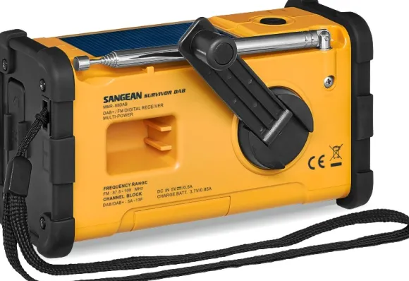 Sangean MMR-88 DAB:n voit ladata käyttäen käsikampea, Micro USB-kaapelia tai aurinkopaneelia!