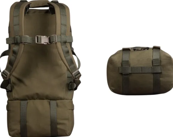 Pääosasto on yhteensopiva koukkukiinnitysten kanssa, ja PALS-hihnat repun edessä ja sivuilla mahdollistavat tarvikkeiden nopean kiinnittämisen ulkopuolelle.