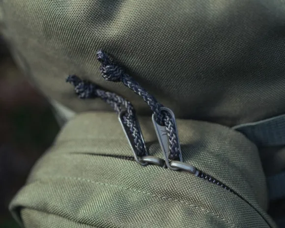 Säilytyspussissa on vetoketju, sisäinen litteä tasku, joustavat lenkit ja kiinnityspiste pienemmille esineille. Takapuolella on Savottan PALS-kiinnitysjärjestelmä taittuvilla läpillä. Kiinnitysremmit voidaan myös punoa 45–50 mm leveisiin vyönlenkkeihin.